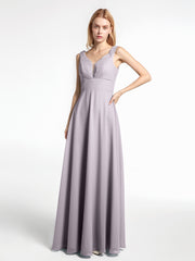 Notch Neck Chiffon Simple Full Length Dress-Dusk