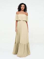 Off Shoulder Chiffon Tiered Skirt Max Dresses-Champagne Plus Size