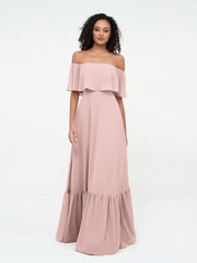 Off Shoulder Chiffon Tiered Skirt Max Dresses-Dusty Rose