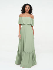Off Shoulder Chiffon Tiered Skirt Max Dresses-Dusty Sage Plus Size