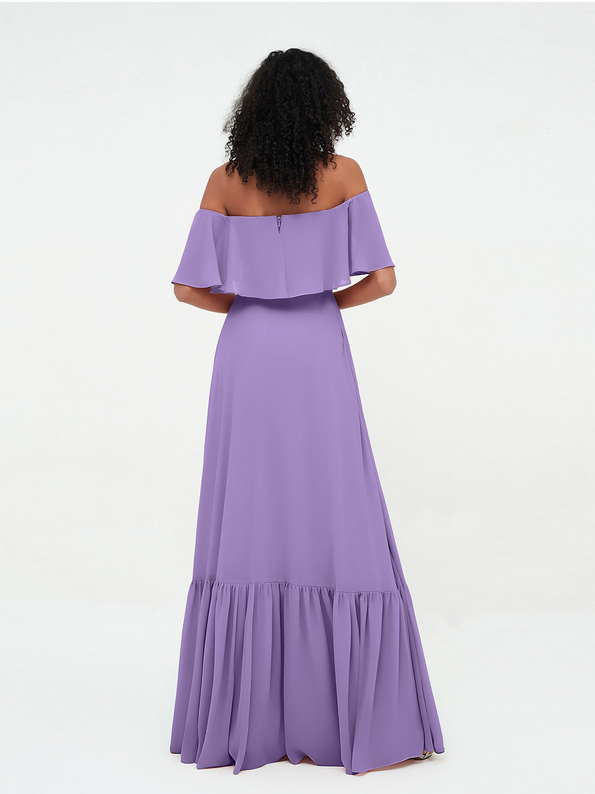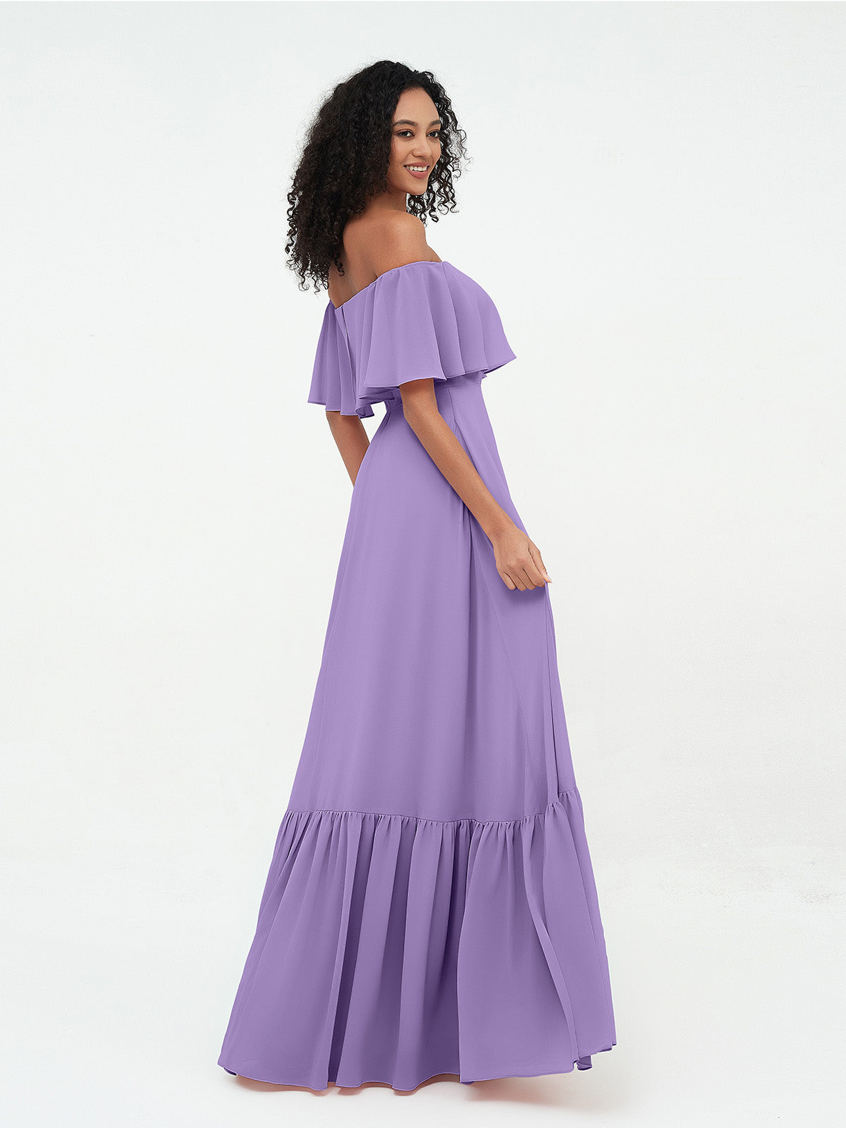 • Virginia is a beautiful full-length chiffon dress, features a sweet and elegant off-the-shoulder design.