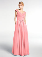 Off shoulder V-neck Maxi Dress with Pockets-Flamingo
