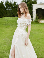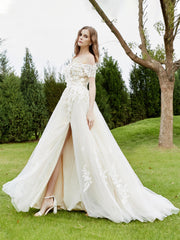 Off-the-shoulder A-line Wedding Dress With Slit Ivory/Champagne