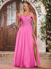 Off-The-Shoulder Beaded Appliqued Maxi Dresses with Slit Azalea