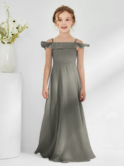 Off-the-shoulder Chiffon A-line Junior Bridesmaid Dresses Steel Grey