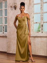 Off-the-shoulder High Slit Sheath Long Dress Gold