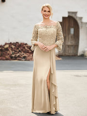 Off-the-Shoulder Lace Top Chiffon Dress Champagne