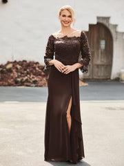 Off-the-Shoulder Lace Top Chiffon Dress Chocolate