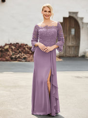 Off-the-Shoulder Lace Top Chiffon Dress Wisteria
