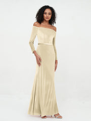 Off the Shoulder Long Sleeves Velvet Dresses Champagne