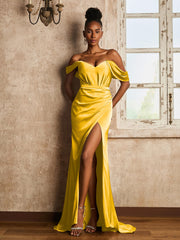 Off-the-shoulder Mermaid Dress with Slit Marigold