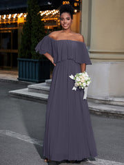 Off the Shoulder Ruffles Chiffon Maxi Dress-Stormy