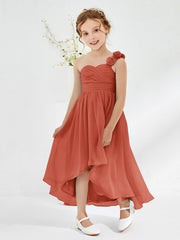 One Flower Shoulder Asymmetrical Junior Bridesmaid Dresses Rust