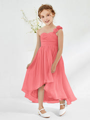 One Flower Shoulder Asymmetrical Junior Bridesmaid Dresses Watermelon