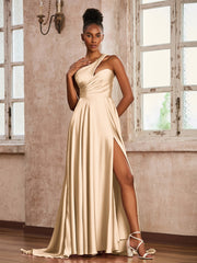 One Shoulder Acetate Satin Dress Champagne