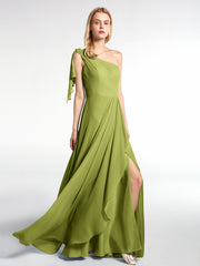• Modernly stylish with a simple yet modern dress bodice, this full-length one shoulder chiffon bridesmaid dress is so pretty and stunning.