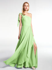 • Modernly stylish with a simple yet modern dress bodice, this full-length one shoulder chiffon bridesmaid dress is so pretty and stunning.
