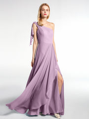 One Shoulder Chiffon Maxi Dress with Cascade-Wisteria