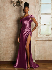 One Shoulder Long Dress with Shoulder Ruched Mulberry