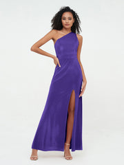 One Shoulder Open Back Velvet Dresses with Slit Regency