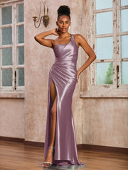 One-Shoulder Pleated Stretch Satin Dress Dusk