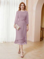 • The chiffon tea-Length sheath dress exudes elegance and sophistication. With the addition of the Illusion Long sleeves Jacket, you'll feel comfortable and stylish.
