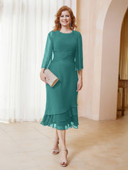 • The chiffon tea-Length sheath dress exudes elegance and sophistication. With the addition of the Illusion Long sleeves Jacket, you'll feel comfortable and stylish.