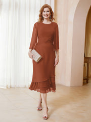 Pleated Ruffle Sheath Dress with Jacket Rust