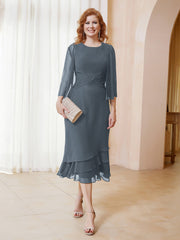 • The chiffon tea-Length sheath dress exudes elegance and sophistication. With the addition of the Illusion Long sleeves Jacket, you'll feel comfortable and stylish.