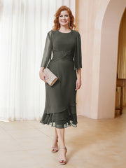 • The chiffon tea-Length sheath dress exudes elegance and sophistication. With the addition of the Illusion Long sleeves Jacket, you'll feel comfortable and stylish.