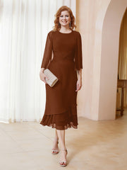 • The chiffon tea-Length sheath dress exudes elegance and sophistication. With the addition of the Illusion Long sleeves Jacket, you'll feel comfortable and stylish.