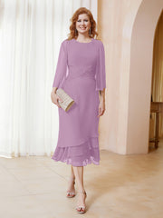 • The chiffon tea-Length sheath dress exudes elegance and sophistication. With the addition of the Illusion Long sleeves Jacket, you'll feel comfortable and stylish.