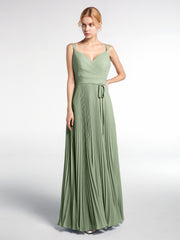 Pleated Skit Double Straps Dress with Self tie Dusty Sage