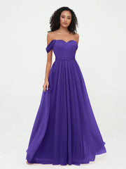 • Gustave features a shirred off the shoulder bodice with a sweetheart neckline for a universally flattering look. For a formal occasion, consider this long tulle bridesmaid dress that offers gorgeous textural contrast.
