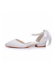 Satin Beaded Ribbon Low Heels Bridal Shoes