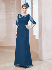 Scoop Lace Neckline Ruffles Sheath Dress Ink Blue