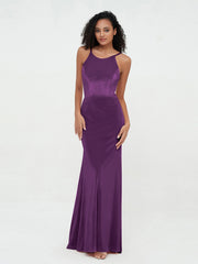Scoop Neck Velvet Dresses with Sweep Train Grape