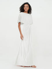 Sheath Velvet Long Dresses with Flutter Sleeves Ivory