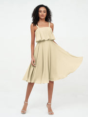 Shoulder Straps Round Skirt Short Chiffon Dresses Champagne