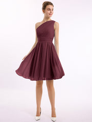 Single Shoulder Knee length Chiffon Dresses Cabernet