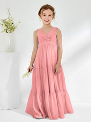 Sleeveless Chiffon Junior Bridesmaid Dresses with Bow Flamingo