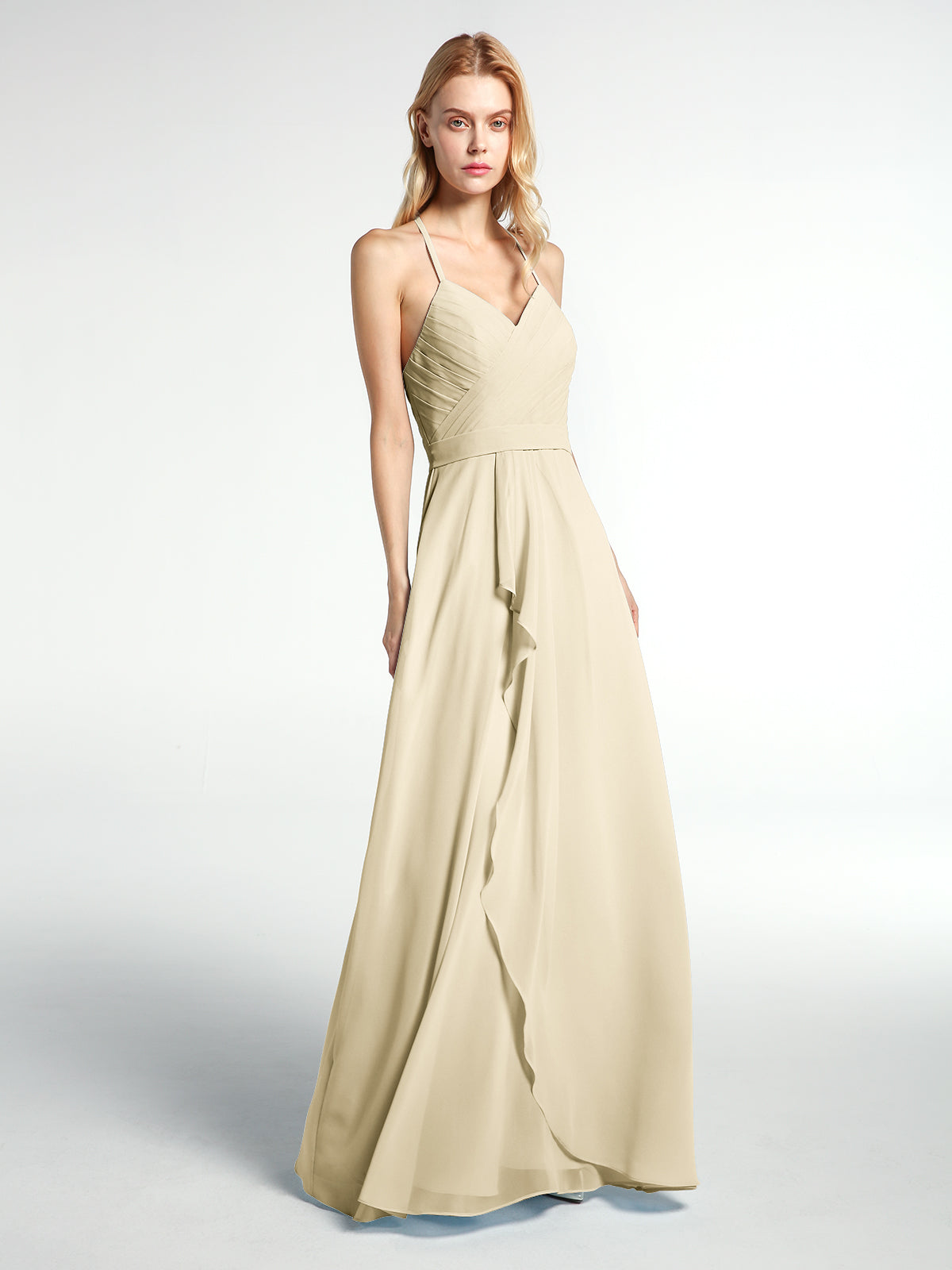 Spaghetti Strap Elegant Bridesmaid Dress with V-neck Champagne