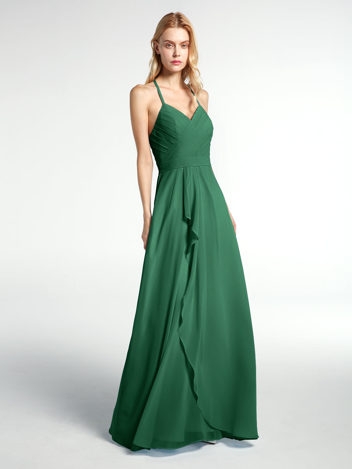 Spaghetti Strap Elegant Bridesmaid Dress with V-neck Dark Green