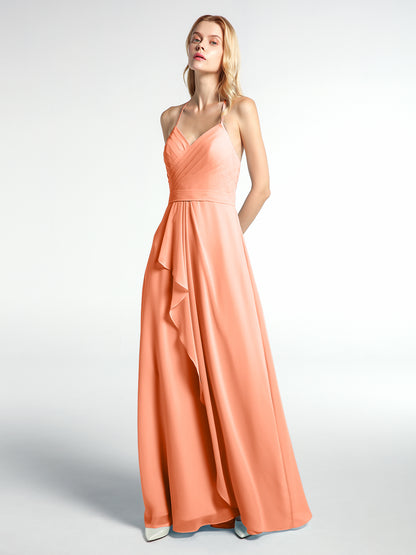 Spaghetti Strap Elegant Bridesmaid Dress with V-neck Papaya