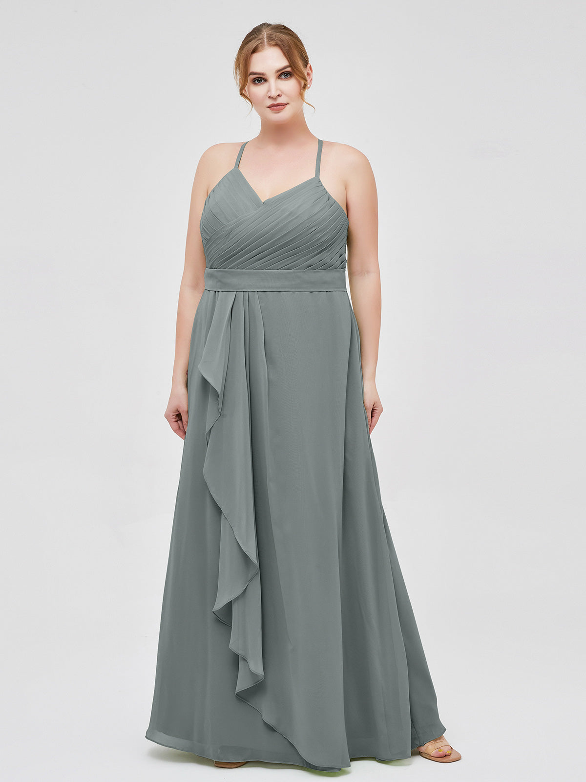 Spaghetti Strap Elegant Bridesmaid Dress with V-neck Steel Grey