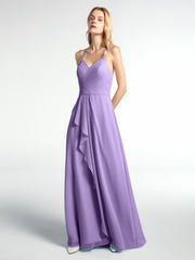 Spaghetti Strap Elegant Bridesmaid Dress with V-neck Tahiti