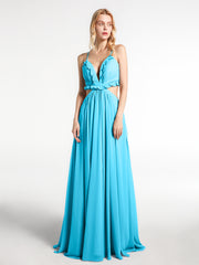 Spaghetti Strap Ruffled Chiffon Cutout Maxi Sexy Dress Pool Plus Size