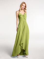 Spaghetti Strap Ruffles High Low Chiffon Dress-Clover