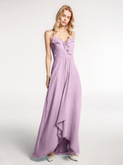 Spaghetti Strap Ruffles High Low Chiffon Dress-Wisteria