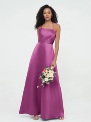 Spaghetti Straps Pleated Bodice Satin Gowns-Orchid